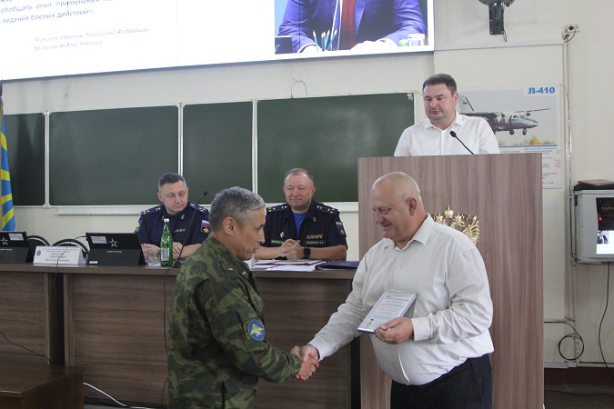 9 сентября в Краснодарском высшем военном авиационном училище летчиков им. Героя Советского Союза А.К. Серова состоялись учебно-методические сборы с руководящим, профессорско-преподавательским составом и научными работниками учебного заведения. По приглашению руководства училища в мероприятии приняли участие представители Краснодарской краевой общественной организации «Всероссийское общество изобретателей и рационализаторов» АНИСИМОВ КОНСТАНТИН ВИКТОРОВИЧ — председатель организации и СМЫЧАГИН ЕВГЕНИЙ ОЛЕГОВИЧ — член Совета. Традиционное участие членов Совета ККОО ВОИР в подобном мероприятии происходит во исполнении положений подписанного в ноябре 2024 г. Соглашения о сотрудничестве.