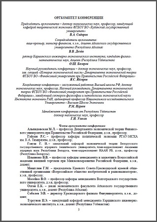 В качестве одного из учредителей конференции выступила Краснодарская краевая общественная организация «Всероссийское общество изобретателей и рационализаторов». Среди членов оргкомитета конференции - председатель Совета ККОО ВОИР, к.э.н., профессор МИШУЛИН ГЕОРГИЙ МАРКОВИЧ.